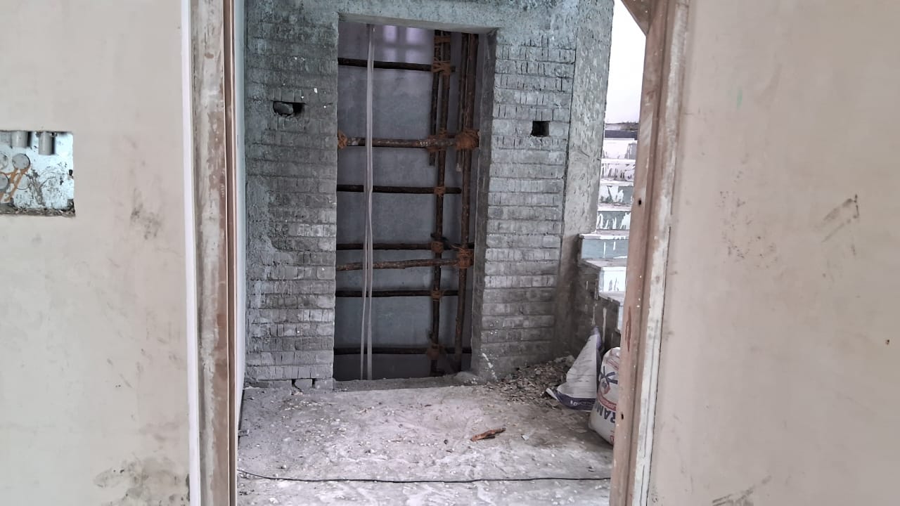 - Stilt floor plastering work is completed.