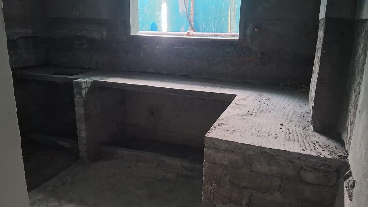 - Stilt floor common toilet plastering work is completed.