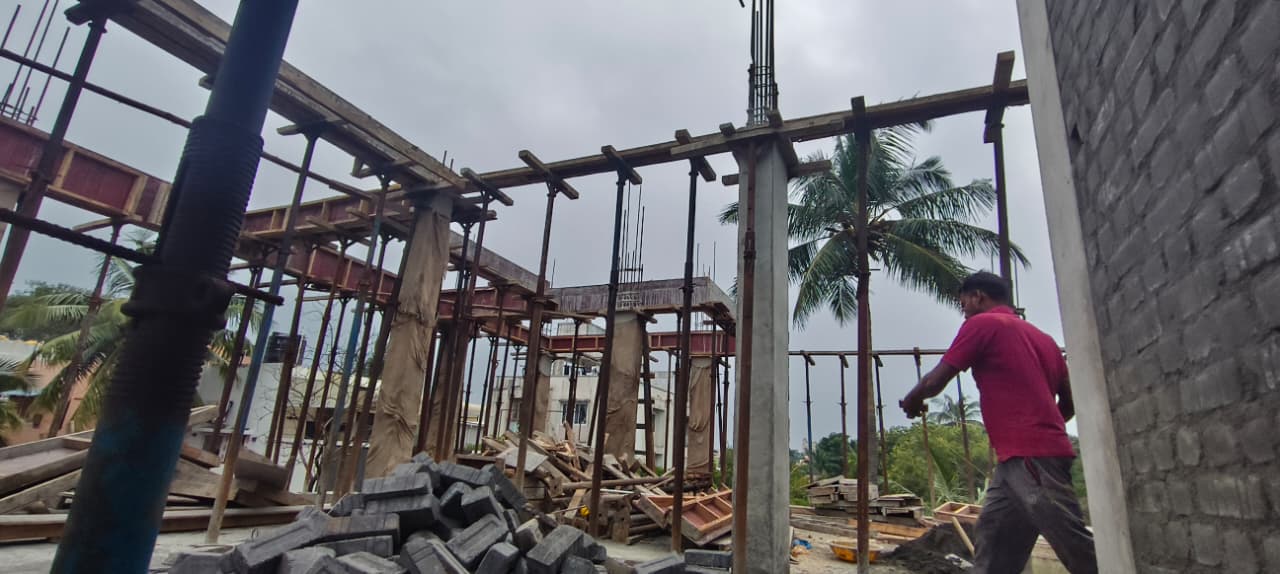 - 3rd floor roof shuttering work is in progress.